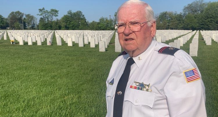 The cemetery was quiet. The sun warmed 15,000 identical white headstones, arrayed in precise rows on lush green lawn. Then, in the distance, came three muffled rifle volleys, followed by the melancholy tune.
