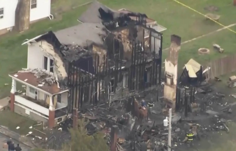 Neighbor Jack Mull said he saw the flames when he stepped outside to have a cigarette early Wednesday, just after midnight. He screamed at his daughter to call 911 and raced to get a ladder. He told reporters he saw the children’s mother, Miranda John, standing on a rear roof with a small child.