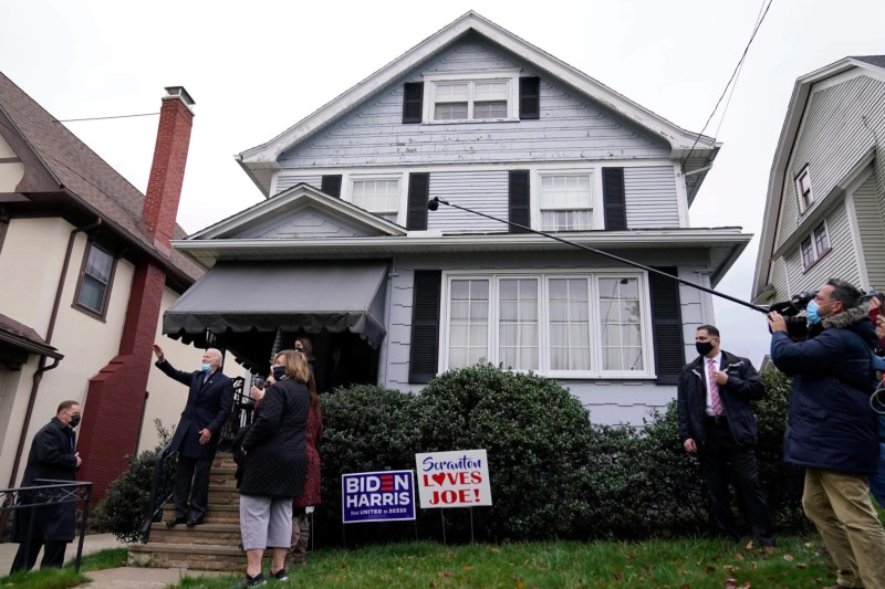 A week earlier, Biden returned to his childhood home early on Election Day, visiting campaign volunteers in south Scranton, then visiting the home he grew up in.
