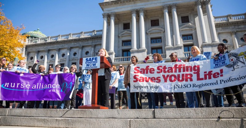 That inaction prompted nurses from across Pennsylvania to gather in Harrisburg on Tuesday for a rally and lobby day for the bill, which would establish safe staffing ratios for nurses based on the departments or wings they work in.