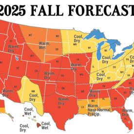 While an overall warmer-than-average fall season was predicted by the Old Farmer’s Almanac for 2025 for the United States, most of Pennsylvania, the Appalachians and Lower Lakes are forecast to see cooler-than-average temperatures and dry conditions with lower-than average precipitation.