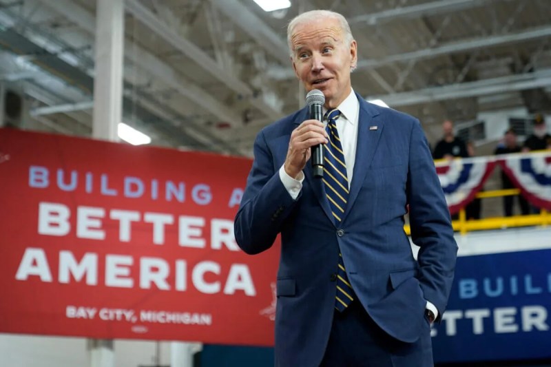 FILE – President Joe Biden speaks about manufacturing jobs and the economy at SK Siltron CSS, a computer chip factory in Bay City, Mich., Nov. 29, 2022. (AP Photo/Patrick Semansky, File)