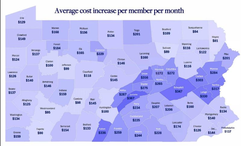 Bucks County residents on Pennie insurance saw their premiums rise an average of 66% per policy, according to state data, or $134 per member per month.
