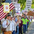 Just before the crowd began its march, a bus pulled up alongside the pavilion – at the bus parking sign. A small handful of people got off, who were met by others and walked away. Pease said later in an interview what a coincidence that was, adding that no one is bused in to attend, and no one is paid.