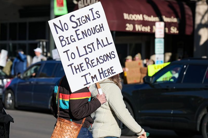 Several hundred people protest at one of thousands of demonstrations across the country