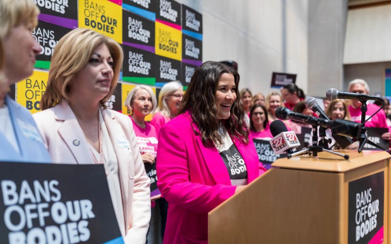 Photo – Sean Kitchen: Planned Parenthood PA Advocates Executive Director Signe Espinoza speaking at a press conference at the North Office Building on June 7, 2023