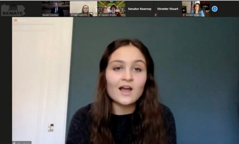 Josie Cosentino talks during a virtual hearing about the how students' mental health has been affected by the coronavirus pandemic. (Screenshot)