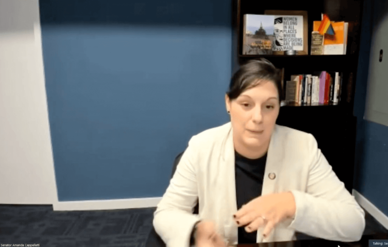State Sen. Amanda M. Cappelletti (D-Montgomery) speaks during a virtual public hearing on the need for workplace accommodations for pregnant and postpartum Pennsylvanians.