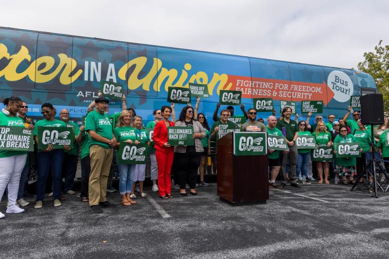 Dozens of American Federation of State, County and Municipal Employees (AFSCME) Council 13 members from across the Harrisburg area braved the hot, humid weather on Tuesday to host a press conference holding US Rep. Scott Perry accountable for supporting President Donald Trump’s “One Big Beautiful Bill” Act.