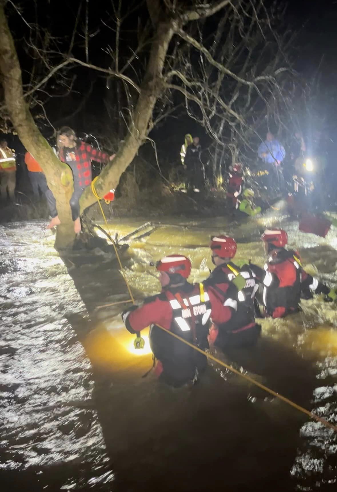 Check out this video of firefighters from the Middletown Fire Company in Delaware County rescuing a man who was clinging to a tree amid rushing water overflowing from Marcus Hook Creek.