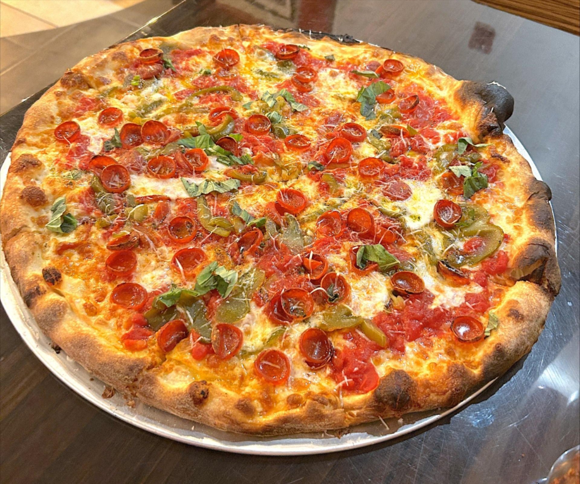 This large pizza with cup pepperoni and sweet peppers from Johnny’s Pizza in Wayne was one of the best pizzas that Pizzavania editor Patrick Berkery enjoyed in 2025. (Patrick Berkery/The Keystone)